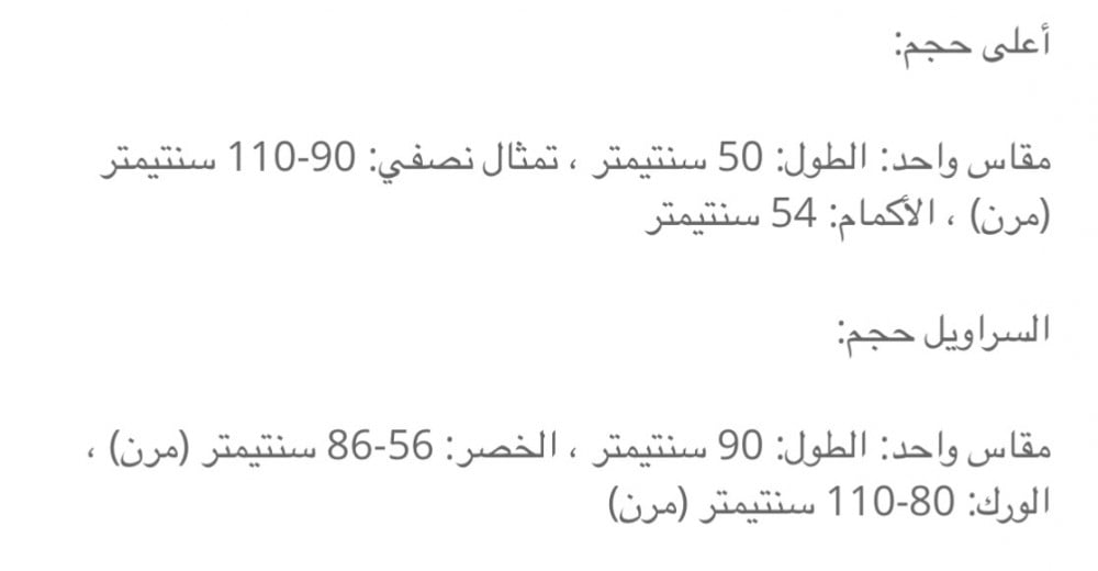 - قبل تأكيد الطلب يرجى التأكد من جدول المقاس